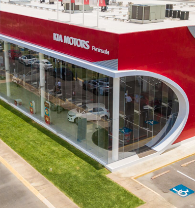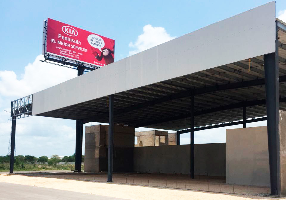 Construcción de agencia de autos Kia en Periférico de Mérida, Yucatán.